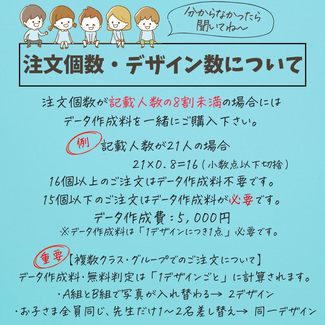 記載人数×0.8に満たない個数でのご注文でデータ作成料を追加していない場合には、データ作成料の追加注文お願いします。