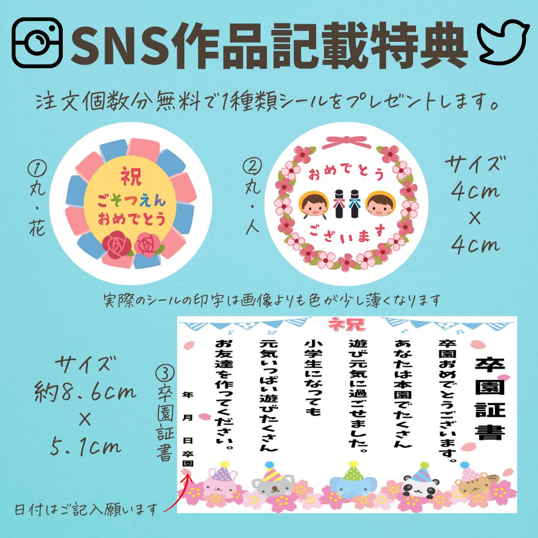当店SNS等に作品紹介として記載許可いただける場合、卒園シールプレゼント、