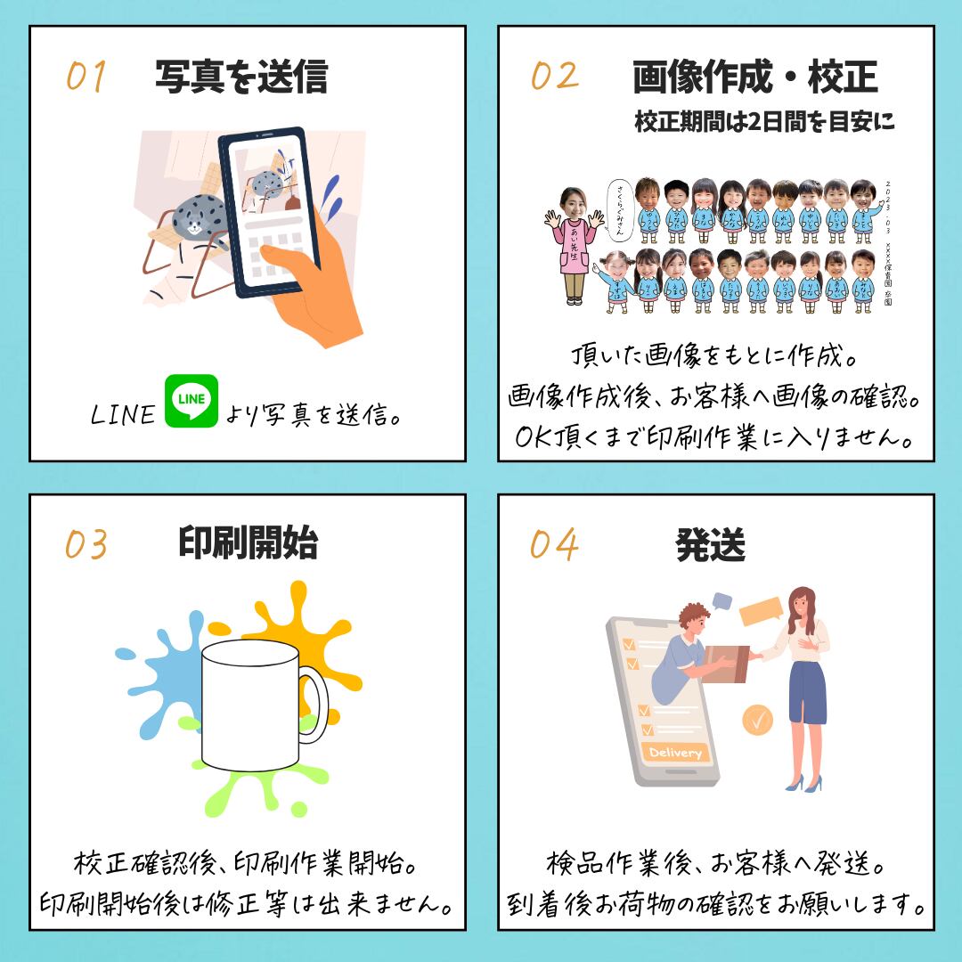 ご注文後、お子様の写真とお名前、施設名をお送りください。